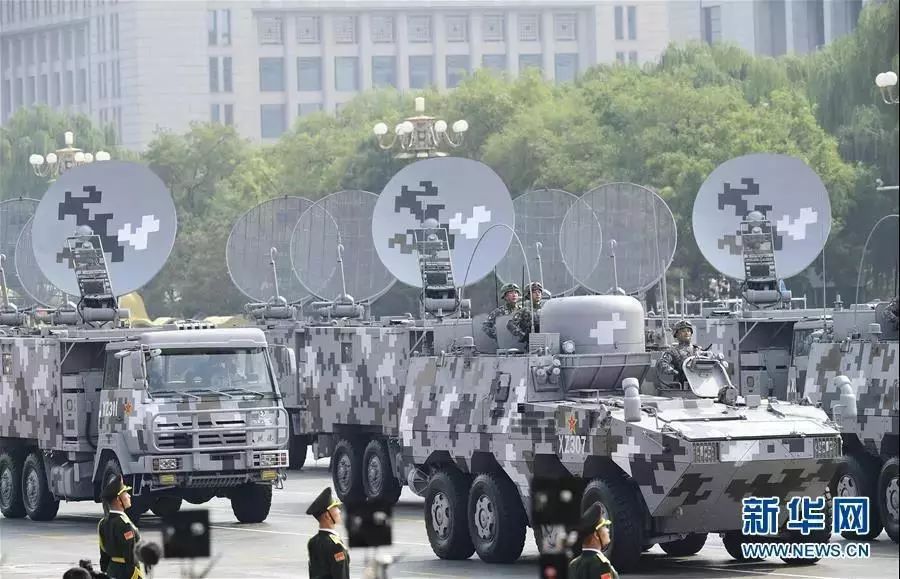 閱兵現(xiàn)場,多達(dá)四個(gè)信息化方隊(duì)宣告我軍在復(fù)雜電磁環(huán)境下確保打贏的能力與決心。這些首次公開的專用信息化車輛,負(fù)責(zé)偵測、指揮、干擾、對抗、無線接入節(jié)點(diǎn)、衛(wèi)星通信等各種功能,既能獨(dú)立遂行作戰(zhàn),又能支援戰(zhàn)略方向的聯(lián)合作戰(zhàn),奪取復(fù)雜電磁狀態(tài)下的電磁主動權(quán)。